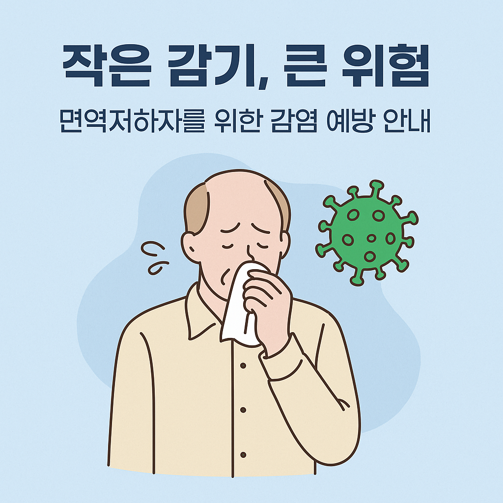 - 면역억제제 사용 중인 경우: 몸의 과잉 면역 반응을 줄이는 대신, 외부 병원체에 대한 방어도 함께 약해집니다.